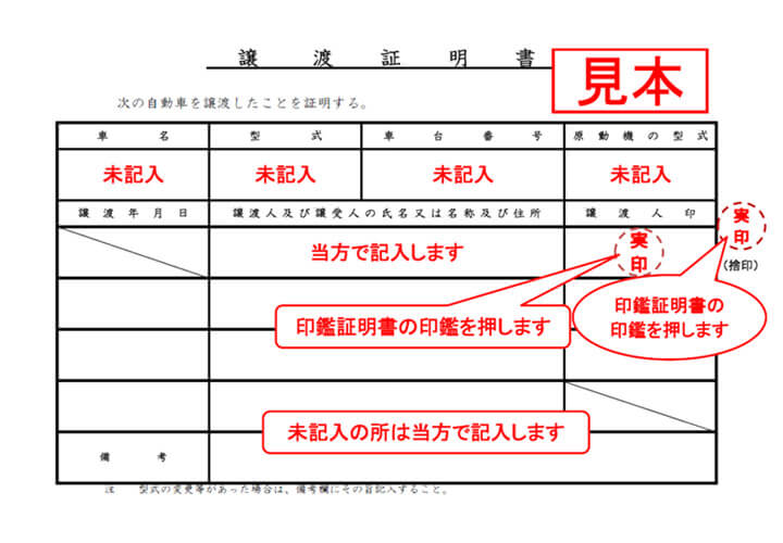 自動車の名義の書き換え・住所の変更・ナンバーの変更・抹消(廃車)の登録手続きに必要な書類のサンプルです。記入例につきましてもご確認ください。